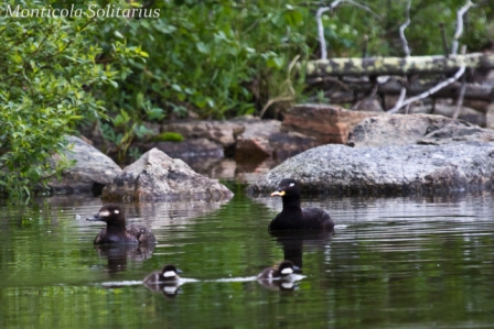 первый час за выводком гоголюшки с двумя птенцами. Недалеко плавала