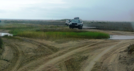 Если держаться левее, ближе к реке - через "пустыню". Но песок