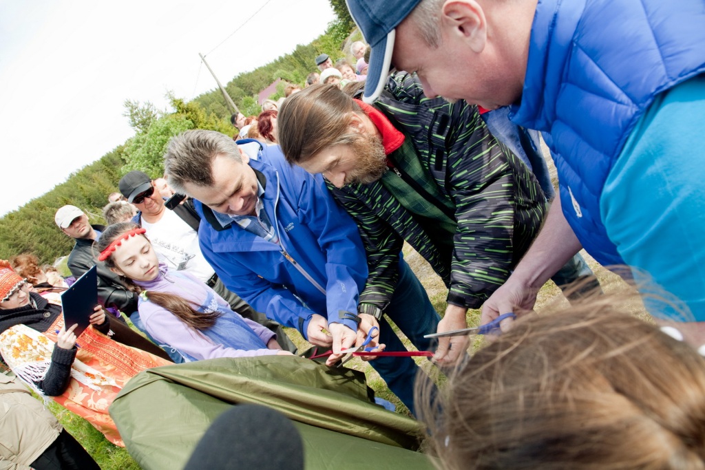 о празднике крепит на сосну Оля, волонтер и туристка с